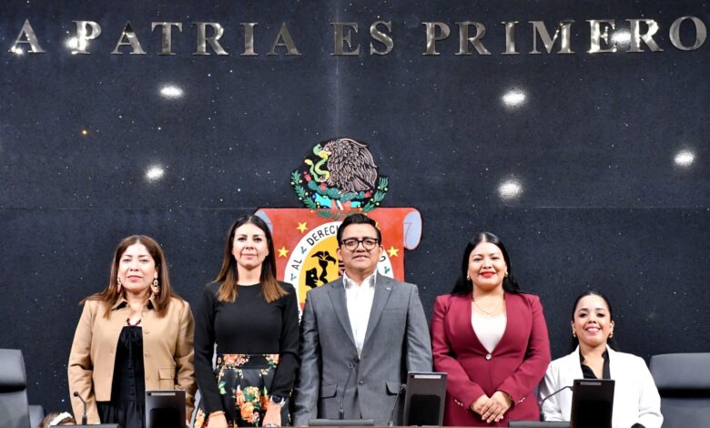 Y como Secretarias, las diputadas Biaani Palomec Enríquez del Partido del Trabajo (PT), Dulce Alejandra García Morlan de Movimiento Ciudadano y Cecilia Olivia Cruz Merlín de Morena.